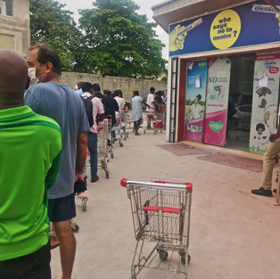 Nevertheless the country took on huge regulations to avoid a catastrophic nightmare in one of the most populated places around the globe. With more than 20 million people in Lagos and around 80 million in the region, this could be spread so easily amongst the people living on top of each other. First the government started with a soft lockdown, meaning that only few people were allowed inside a supermarket, so big lines outside under the hot African sun. Our beer crates were used to measure 1.5m in the waiting line, so simple and typical Nigerian solution. They also measure your temperature everywhere, before you enter a compound, or before you go into a shop, a restaurant or an office.