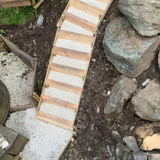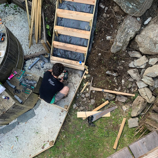 Hugo built stairs in the garden, therefore we went back to the DIY store to get all the supplies at home. He loves to work outdoors, learns things from You-Tube and just tries it. We had to lift the stairs and turn it upside down and I stumbled, we both fell underneath the stairs which was quite heavy. The result of the almost finished stairs was and still is amazing.