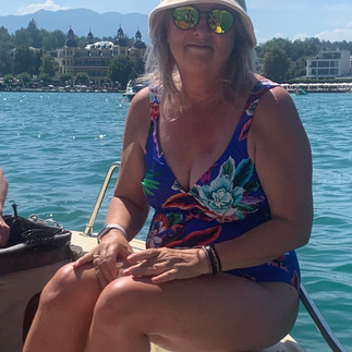 On Sunday it was a beautiful sunny hot day, so we drove the scenic route to Velden am Wörthersee and rented an electric boat and went on the lake. It was just lovely to swim a bit and enjoy each other’s company. In the evening, we played games, because that’s something we really enjoy doing.