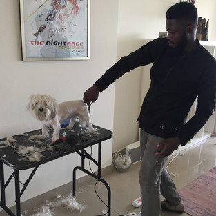 Then suddenly it's time to go back to my other home in Lagos, to warm weather and sports and great friends too. First thing I had to do was giving Ayo a proper grooming. But oh dear I don't like it Ayo with no hair! But it was all tangled and too much hair in these temperatures it's awful for him. See the photos below, no comment.
