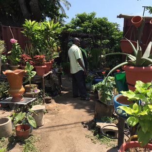 Wednesday Ali and I were on a mission, we were buying pots and plants for our balcony. Yesterday Ali already took me on a tour through Ikoyi to learn what I like and don’t like. I saw beautiful colourful pots, but not many have these pots. We started there where we saw a few colourful ones, we bought 4 sets, these pots are round at the bottom, you need a stand and a little dish to catch the water from the pots. The pots are pretty big, costs per pot after bargaining 4000 Naira (10 Euro).Then our search for nice flowers started. Rob insisted on flowers, but what you see here is a lot of green plants. But when we drove through the streets of Ikoyi and we saw a "nice garden centre". A garden centre is an collection of plants, on the side of a street, so outside, no roof, no door, nothing.