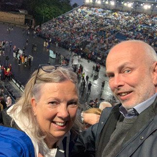 Edinburgh Festival is a yearly event in August and this year we went for it. We walked around, the city has a great vibe and we ate something at a lovely restaurant called Mowgly and then it started to rain cats and dogs. Of course, we were prepared with rain coats, but this is not what we wanted, looking at the show in the rain. At one of the many tourists shops, we decided to buy a tea towel at least to dry our seats, not getting a wet cold butt. But miraculously it stopped raining 15 minutes prior to the show.