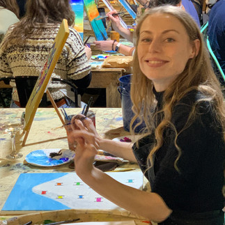 Rob told everyone that the theme was me or 60 years. Everyone made something beautiful. Jack made a self portrait of me, Robin and Armin made a sailing boat, Noa made an abstract colourful painting, Ailsa made me skiing and Hugo made a big heart and Anna made with beautiful colours 60 and Rob finance man as he is, he made numbers 1-60, everyone was very original. The next day we could pick the paintings up when they were dry.
