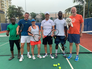Monday morning I play tennis with an international ladies group. A Belgian friend and player is also leaving and so we made some nice group photos and Micky made quickly a card of it, very thoughtful of her. We also said goodbye to our colleague friend Isabelle Spronken, she goes back with her children to The Netherlands and Martin her husband stays another year at Nigerian Breweries in Lagos.