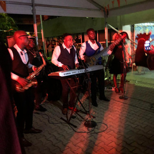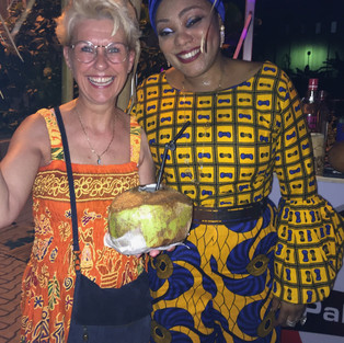 We had a great band, the Oasis Band and Dubie our friend was there to help with the lip syncing battle and he even song with the band. At 11 pm Remco from KLM did the lucky draw. Walter a consultant has won this huge price! Aiki and Adesuwa were there with their palm wine and cocktails from coconuts with a lot of booz in it. It was so nice to have them here partying with us. The bitterballs were great! One guy was very up set and came to me at 9 o'clock "where the heck are the bitterballs",he asked. I told him they were coming but not at the beginning of the party, be patient......