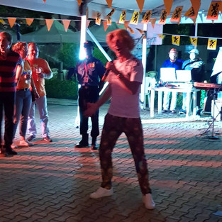 We had a surprise act around midnight. Patrick aka Juergen, the Schlagersanger, sang three songs for us. We pretended he was flown in from Germany, he's Dutch by the way, we grabbed two guards from the gate to pretend they were his bodyguards. They played their role nicely as they stood by his side the whole time. Juergen asked me to start a polonaise, and so we went through the whole place, it was so much fun. Around 2am still many people were there, which is a great feeling, people having fun on a party you've organised. I think Rob and I were home around 3am, the staff of the school were staying to clean up and bring everything back to normal again. I was very grateful for this as I was exhausted. For once Rob walked Ayo in the morning. My feet were the biggest problem the day after. That Sunday we packed for Ghana!