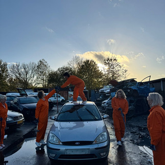 Geraldine thought she had to work, but then with the 6 of us we came in. She was flabbergasted, had no idea what was going on. Mission accomplished! After cake and drinks we did something real fun, we went to a car cemetery, and we demolished a car! With big sledgehammers we could do whatever we wanted, in orange prisoner uniforms we did a great job. We had two injured ladies. Liena and Geraldine were bleeding, then you go to the lady in charge and get a coke to ice it and a band aid. In the evening, we had dinner, 4 more friends joined. We laughed and cried, it was good to see her and hold her in my arms when she was in tears. It’s a lot to digest. Future is uncertain. I was glad that I could go!