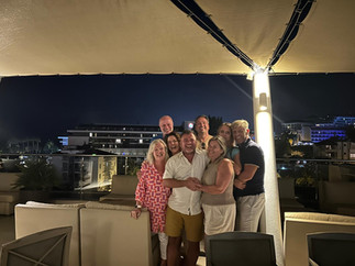 We were joking that they probably had bingo nights….and yes that evening everyone gathered for bingo night! The waiters and people working at the hotel were super friendly. We’d told them that there were 4 more friends arriving and so they organised a table for 8 for us. Rob and I started with a great massage in the afternoon, then we had that in the pocket! The next day I did a facial, and Rob had another massage for his back. Sil, Dana, Thil and Dennis arrived after 1am, the next morning we saw them, the group was complete! We went to the beach, managed to get 8 sunbeds together, although it was crowded, they people working there were helpful. Thursday was a cloudy day, Friday was sunny. On Saturday the 3 of the 4 men wanted to have a haircut. Pat and Nastyja had their hammam treatment. We went into town, found a barber, looked at some shops before we decided to wait nearby at a restaurant and ordered some cocktails. It was so nice to see them again and to catch up!