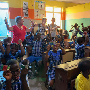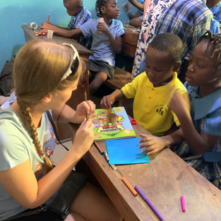 On Tuesday Loes, mum and I went to a school where we did some volunteer work in the form of helping children with arts and crafts. The children were really sweet and very excited to be creating things themselves, they seem to love stickers. This was followed by a trip to the market where we got ourselves some bags and other things. I got myself a sports bag there, as well as two clutches for a ball and a little zebra made out of wood. Having gotten home, Glory made us a wonderful lunch and we played some Qwixx before mum and I went to a work-out session with Favour. I must say that he pushes mum very hard and doesn’t let her cheat (although she tries). In order to relax from the gym we went for a short swim, this was mostly Loes and I swimming and mum relaxing (read: sleeping) on the side.