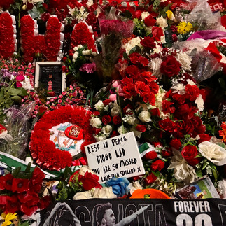 Late afternoon it got cold and started to rain………that wasn’t good. When we arrived at the stadium, we first looked for Diogo’s shrine, a place filled with flowers, cards and teddybears. He got killed in a car accident, 10 days after he got married! He left a wife and three little children behind. There’s another memorial at Anfield, to those who lost their lives in the Hillsborough disaster. 96 people attended a football game and never came home. There’re an everlasting flame and all the names engraved to ensure they will not be forgotten.