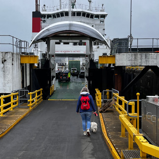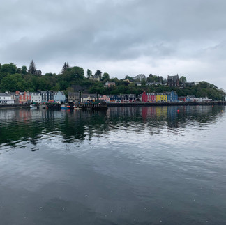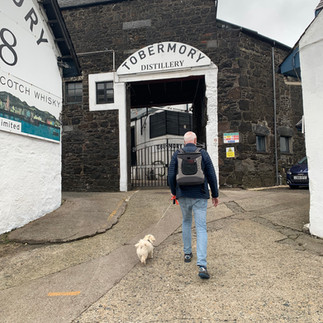 The ride was beautiful, the drive, he was a New Zealander, was nice, but he knew where the accelerator was. These narrow roads, you can’t see anyone coming, because it goes up and down the whole time, need a reduced speed. Even I am saying this, me who’s always in need of speed. We arrived save and sound in Tobermory. A lovely little town with a harbour, where boats are anchored, and all the houses are in bright colours. In Oban Ayo was allowed in every single shop and they all had treats for dogs under the counter. Ayo went from treat to treat basically. In Tobermory it was the opposite, he wasn’t allowed in the shops, in none of them. The restaurant we choose to have lunch, we didn’t even ask if he could come in, we sneaked him in, in his back pack. He knows then that he must be quiet, it always works. We had a look at the distillery in Tobermory and also here we tried to get a tour, but as you can guess 'no tours on Sunday'. So we bought two bottles of whiskey, one for Gary who turned 60 recently and one for ourselves. On the way back to the hotel we made a few stops at lovely places. Monday Rob had to work again; he had his first meeting at the hotel room. Later Rob discovered that the Tobermory distillery is owned by Heineken South-Africa, so we could have gotten a private tour. If only we had planned.