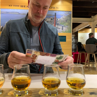 On Saturday we drove to Oban a lovely fisher’s town where they have the famous Oban whiskey distillery. We parked the car, strolled around Oban and found the distillery. Optimistically Rob asked for a tour, “no sir sorry we’re fully booked,” the lady replied. “Well maybe tomorrow then Rob hopefully asked.” “No sir, fully booked as well.” But you can go upstairs to the bar and try a few of our delicious fine whiskeys. Up we went, Rob bought four different whiskeys and here at that very moment I tried my first whiskey ever. You may ask yourself did she like it? The photo says is all. But like with bad wine, after the second glass you don’t taste it anymore. I tried three different ones, but honestly, I don’t think this is for any repetition.