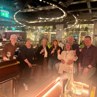 Friday night Viv organised a surprise for them. We went to the flight club at Victoria. There came Rachel and Ian Bray as well. In the afternoon Susie March came to our house to surprise them. Her husband Rupert came to the flight club in the evening. The flight club is basically like bowling but than with darts. We thought this way it's better for them to stay awake after a short night and a long flight for them.